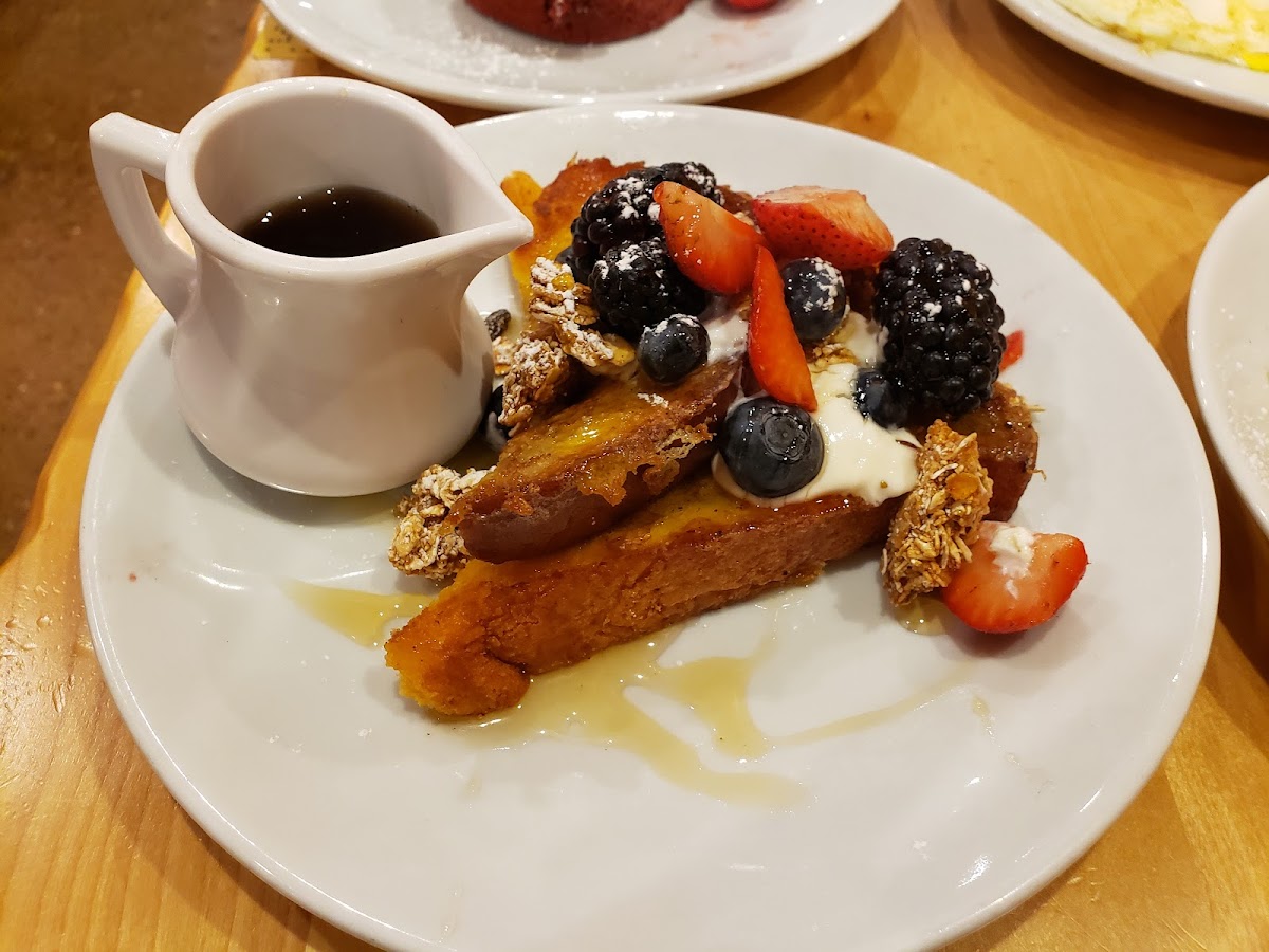 Yolk Preston Center, a bustling breakfast and brunch spot in Dallas, offers a diverse menu that caters to all tastes. From savory to sweet, healthy to indulgent, there's something for everyone. The house drip coffee stands out with its bold flavor, complementing dishes like pancakes, waffles, and chicken & waffles. The red velvet French toast is a must-try, perfectly balancing sweetness with cream cheese and strawberries. While the food may not reach the same level as the downtown location, the quality and quantity for the price remain exceptional. The casual yet trendy atmosphere, friendly service, and dog-friendly patio make Yolk Preston Center a neighborhood gem worth visiting.